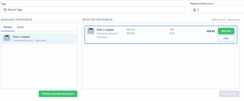 Once enabled, when you allocate resources to a Job, the system can provide a cost breakdown for up to five resources simultaneously. This breakdown shows the split between normal and overtime costs.